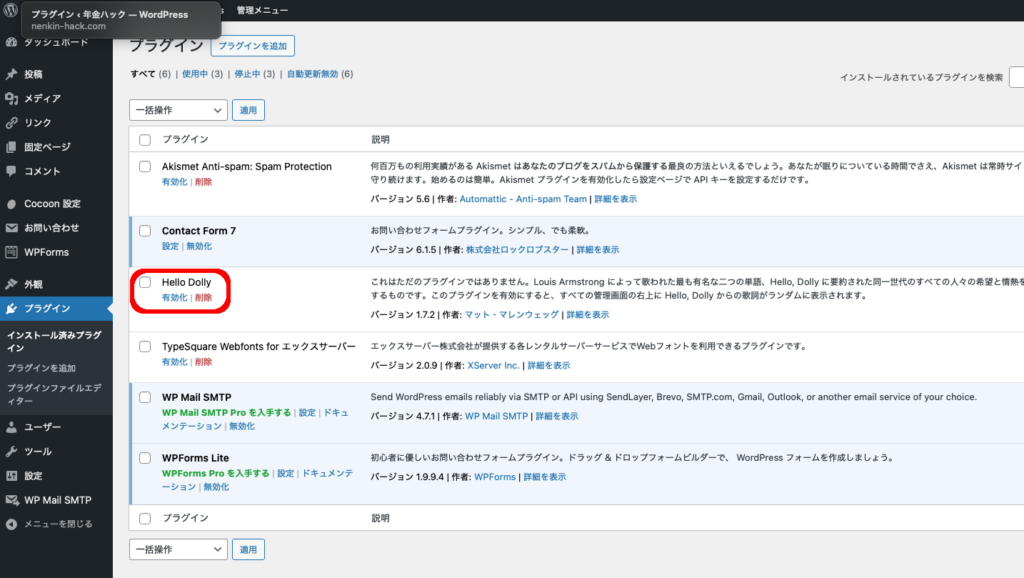 プラグイン → インストール済みプラグイン