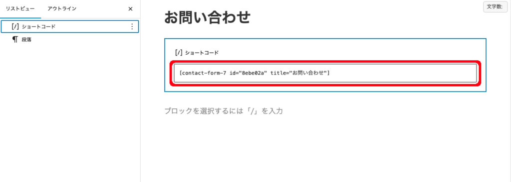 そのページ本文に、Contact Form 7で発行されたショートコードを貼り付ければ完成です。
