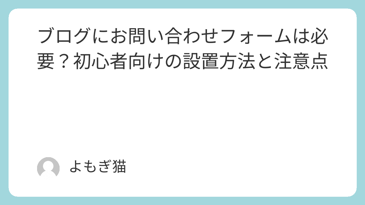 プロフィールやプライバシーポリシーと同じく、お問い合わせページは**「ちゃんとしたブログ」に見せるための基本の一つ**です。