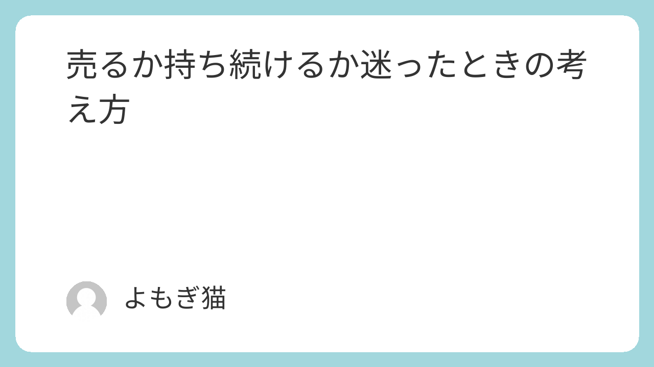 この記事では、売るか持ち続けるか迷ったときに、どう考えると整理しやすいかを、初心者向けにまとめます。