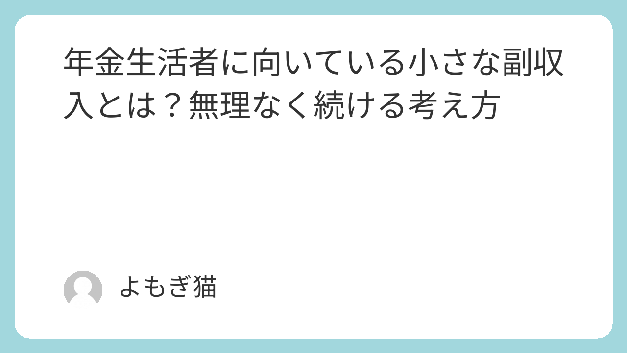 → 年金生活者が“小遣い程度の不労収入”を作る方法|当サイトの方針